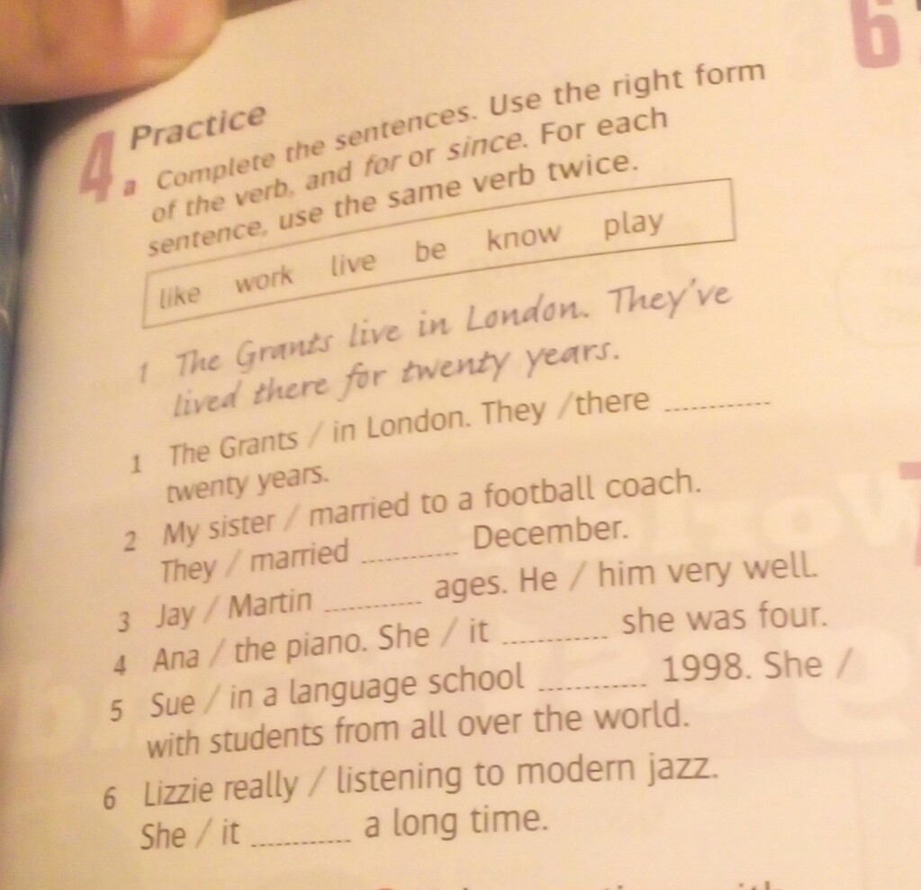 4 Ann plays the piano/She has played (has been playing) it since she was four.