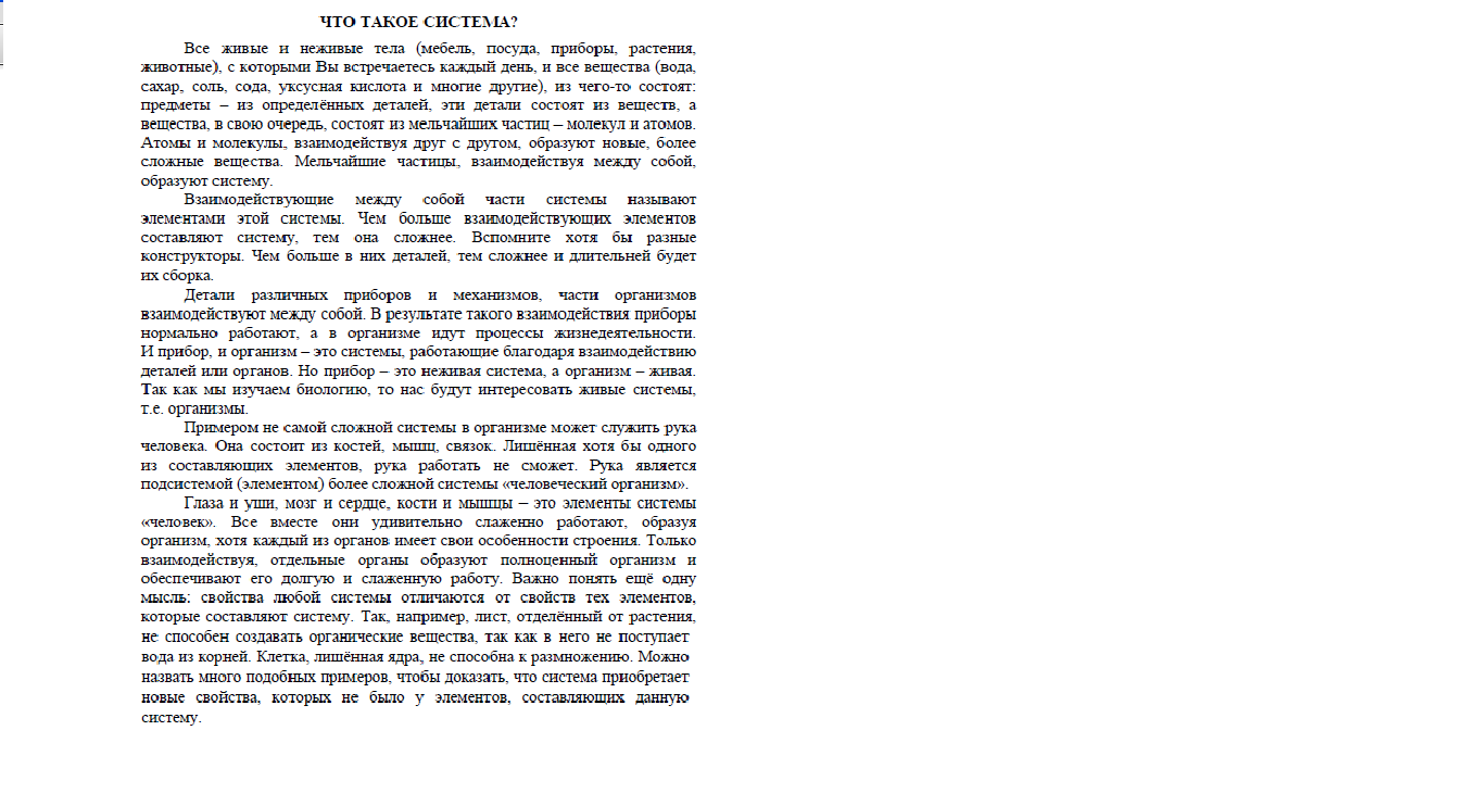 Используя содержание текста «Что такое система?» и знания школьного курса биологии, ответьте на вопросы и выполните задание. 1) Что является главным условием возникновения системы? 2) Чем с позиции анатомии отличается система «рука» от системы «мышца»? 3) На примере строения цветка докажите, что это система.