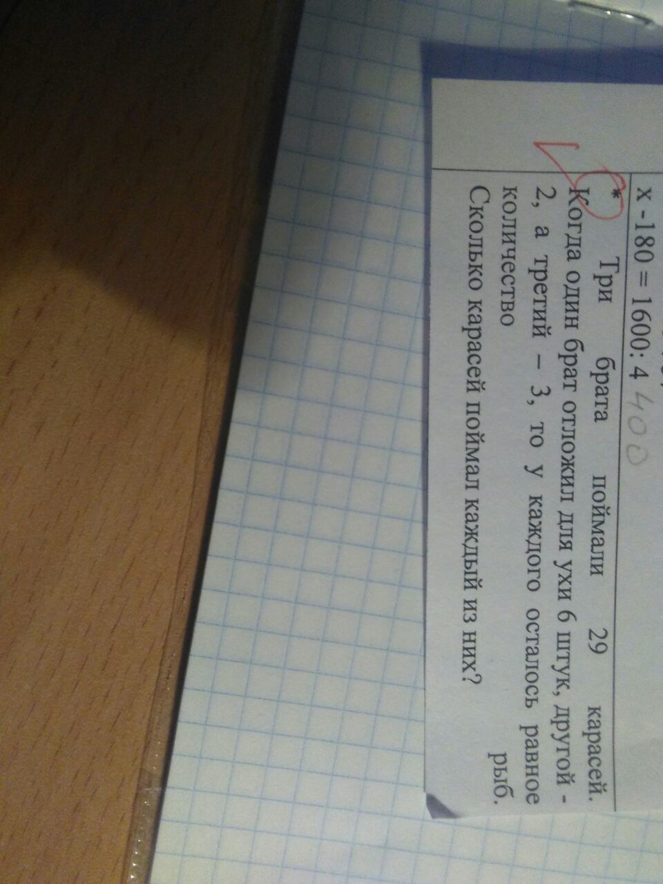 4) (к количеству оставшихся карасей добавляем карасей отложенных для ухи, для каждого брата по отдельности)