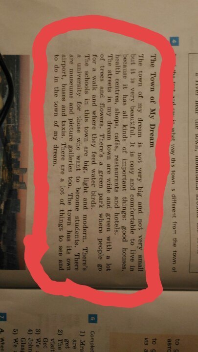 Улицы моего города мечты широкие и зеленые с многочисленными деревьями и цветами. Здесь есть парк где люди гуляют и кормят птиц. Школы в этом городе большие, светлые и современные. Здесь есть университет для тех, кто хочет стать студентом. Здесь есть музеи и картинные галереи тоже. У города есть собственный аэропорт, автобусы и такси. Здесь есть много вещей чтобы увидеть и заняться чем-то в городе моей мечты.