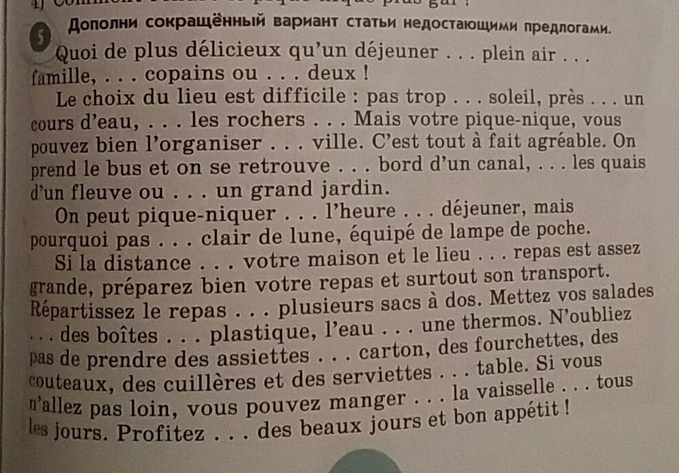 2)pas trop de soleil, près d'un cours d'eau, entre les rochers (в конце предложения предлог не ставят, может наречие enfin(наконец));