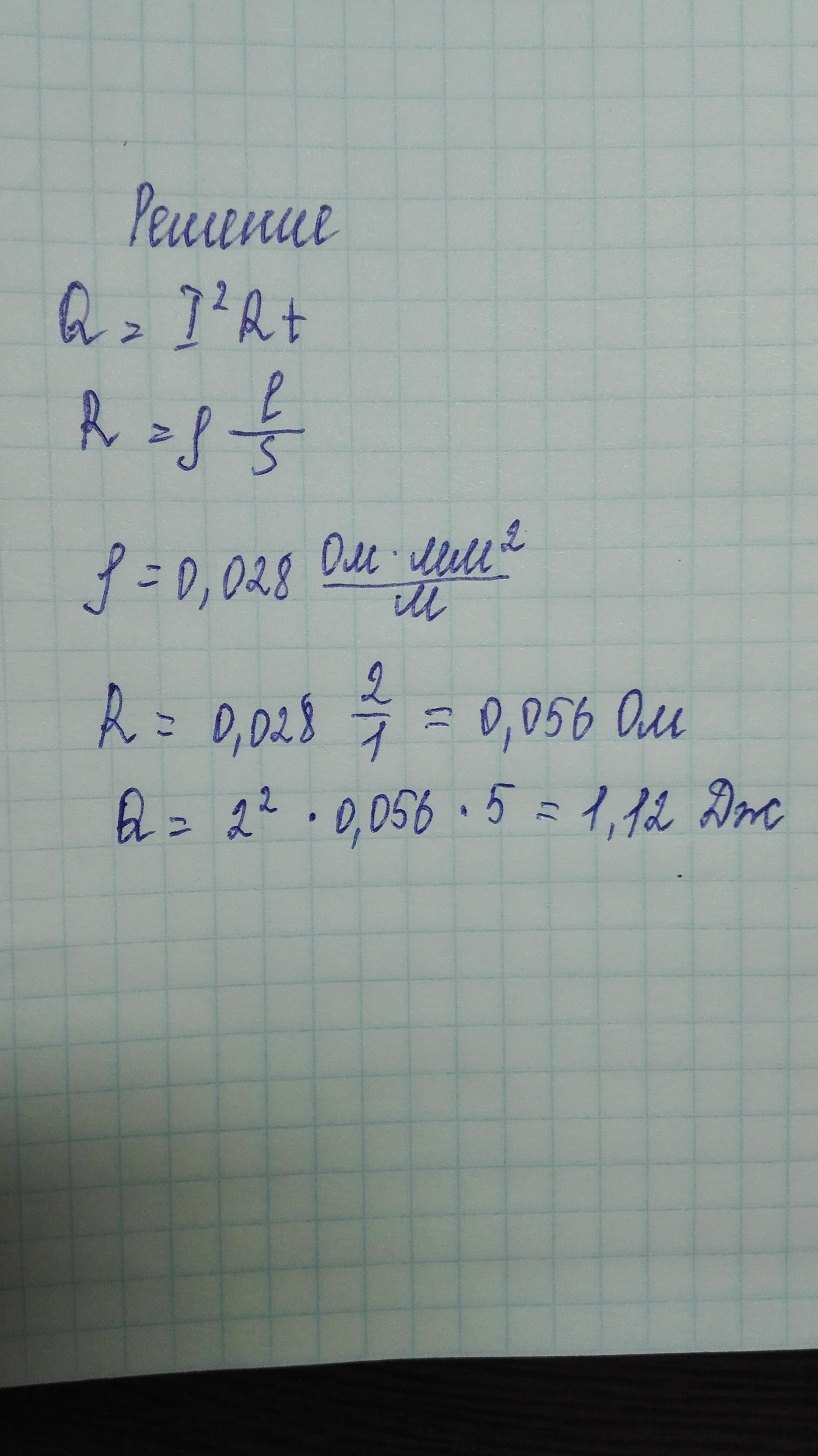 Какое количество теплоты выделяет за 5 с алюминиевый проводник с площадью поперечного сечения 1мм2 и длиной 2 м, если сила тока в нем 2 А?