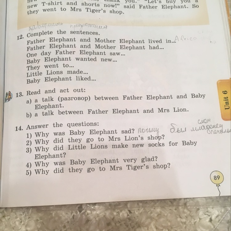 1. Почему слоненок юыл грустным?