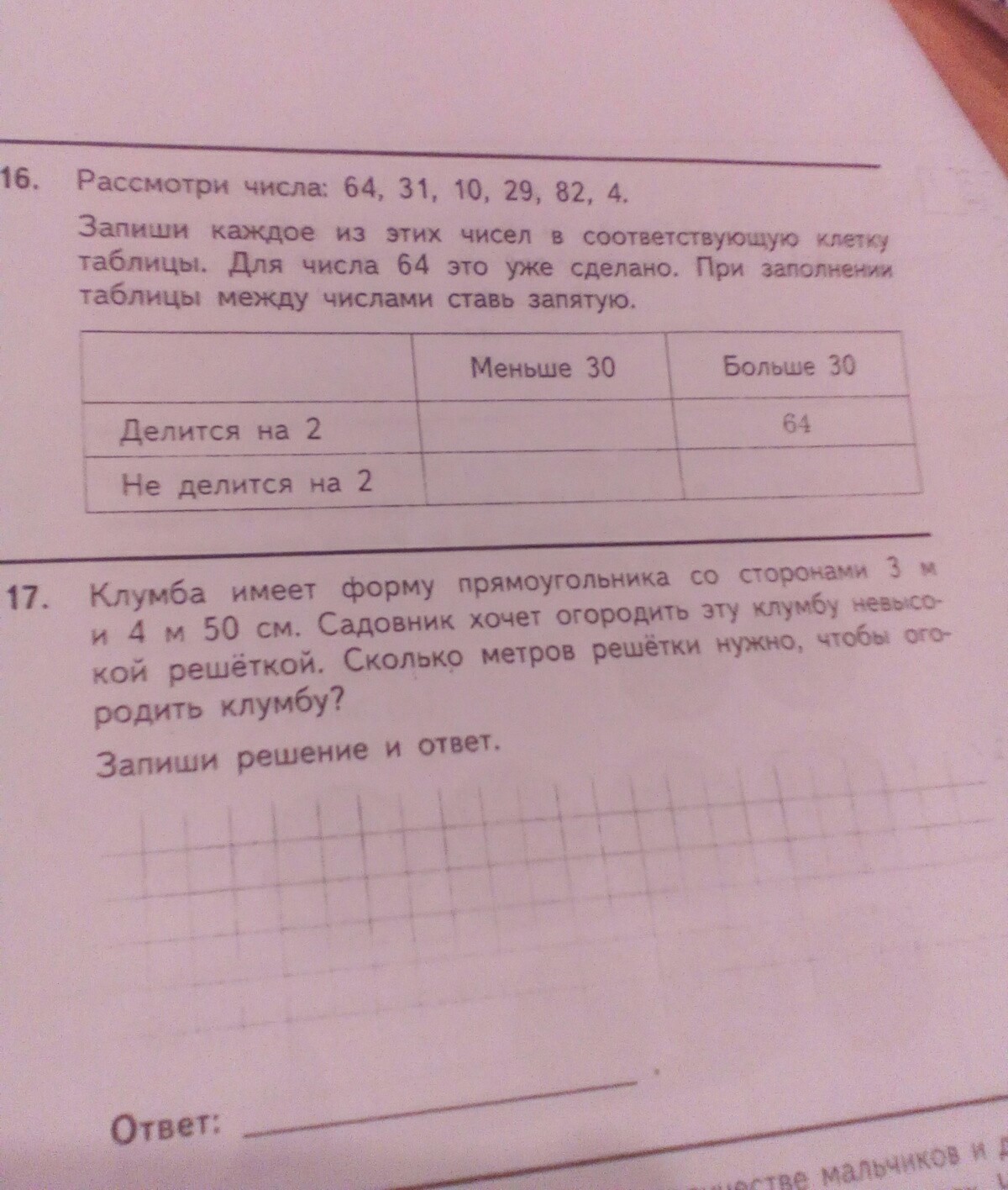 рассмотри числа 64 31 10 29 82 4 Запиши каждое из этих чисел в соответствующую клетку таблицы .Для числа 64 это уже сделано .При заполнении таблицы между числами ставь запятую.