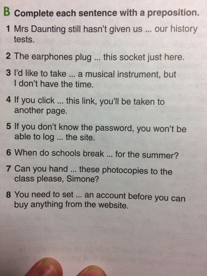 Помогите пожалуйста вставить предлоги по английскому (задание на фото)
