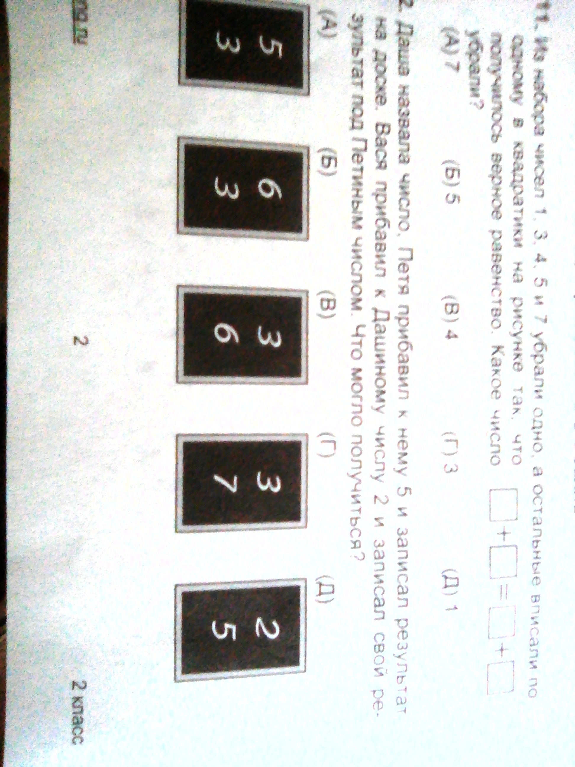 Даша назвала число, Петя прибавил к нему 5 и записал результат на доске. Вася прибавил к Дашиному числу 2 и записал свой результат под Петиным числом.Что могло получиться?
