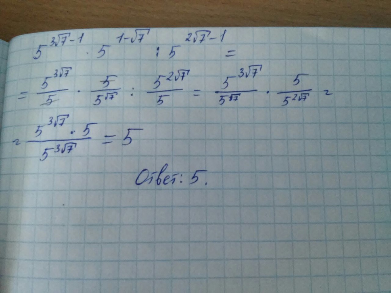 1. При умножении двух чисел с одинаковыми основаниями (в твоем случае числа 5) показатели степени складываются.
