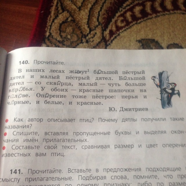 Больш[ой], пестр[ый], мал[ый], красн[ые], пёстр[ое], черн[ые], бел[ые],