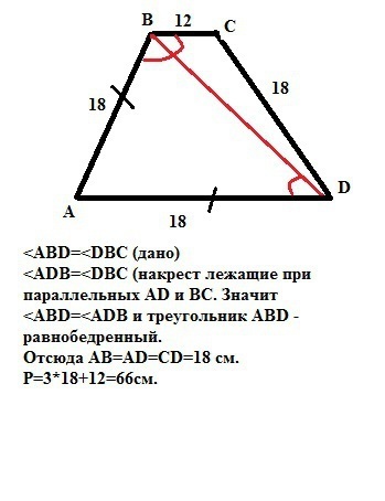 Если диагональ трапеции является биссектрисой тупого угла (делит угол пополам), значит она отсекает от трапеции равнобедренный треугольник.