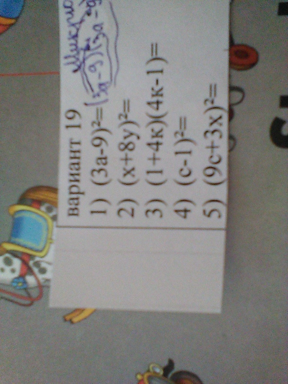 1. (3а-9)^2= 9а^2-54а+81