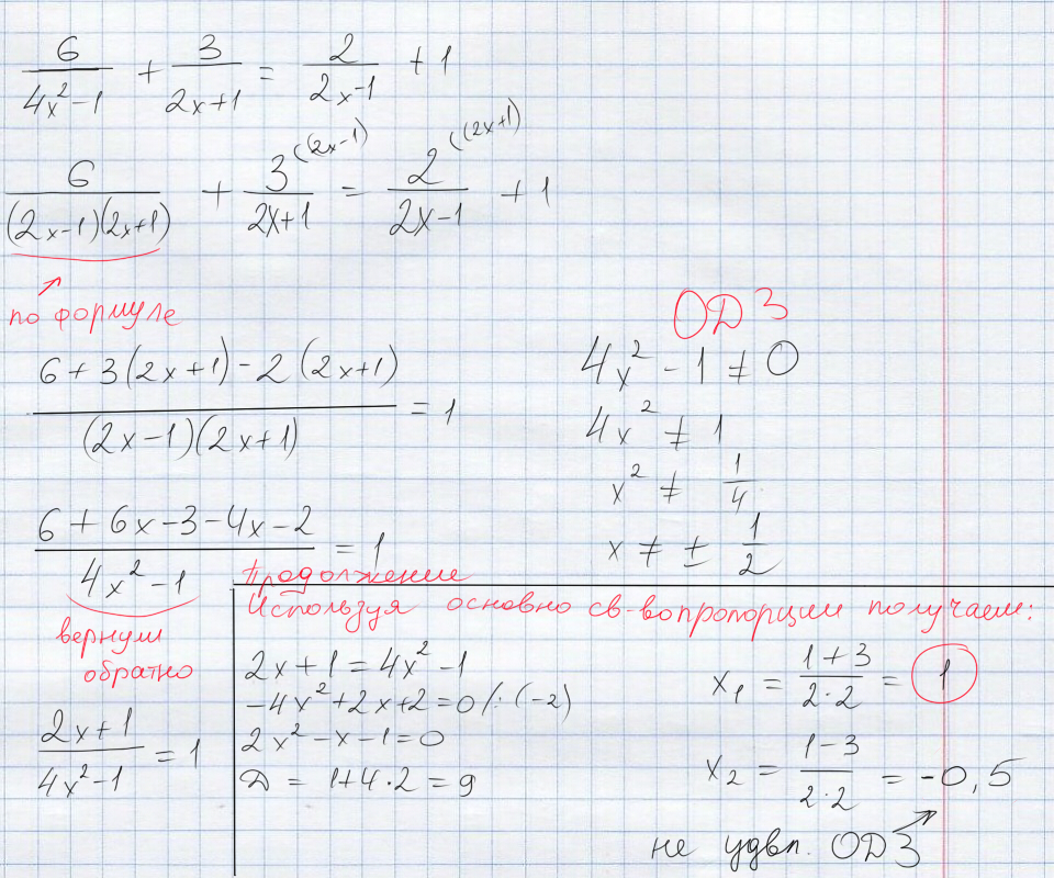 решить уравнения: в числителе 6 в знаменателе 4х^2-1 плюс в числителе 3 в знаменателе 2х+1 равно в числителе 2 в знаменателе 2х-1 плюс 1.(подробнее)