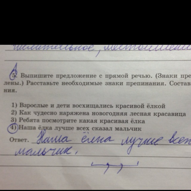 Прошу напишите ответ.И не смотрите на то , что обведено и написано.Нужно предложение с прямой речью!