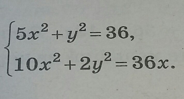 Домножить первое уравнение на 2 и получить 10x^2 + 2y^2 = 72, затем вычесть из первого уравнения второе и получить: 72-36х = 0, 72 = 36х, х = 2, подсталяем в первое уравнение и получаем, y^2 = 16, значит y = 4 или -4