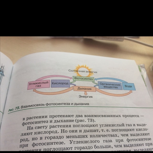 Для фотосинтеза растениям необходим углекислый газ, вода и солнечный свет. Во время этого процесса образуются кислород и органические вещества. Кислород нужен животным для дыхания, а при выдохе образуется углекислый газ. Вот и замкнулся круг: углекислый газ вновь поступает растениям, а с помощью него и воды на свету вновь образуется кислород и органические вещества.