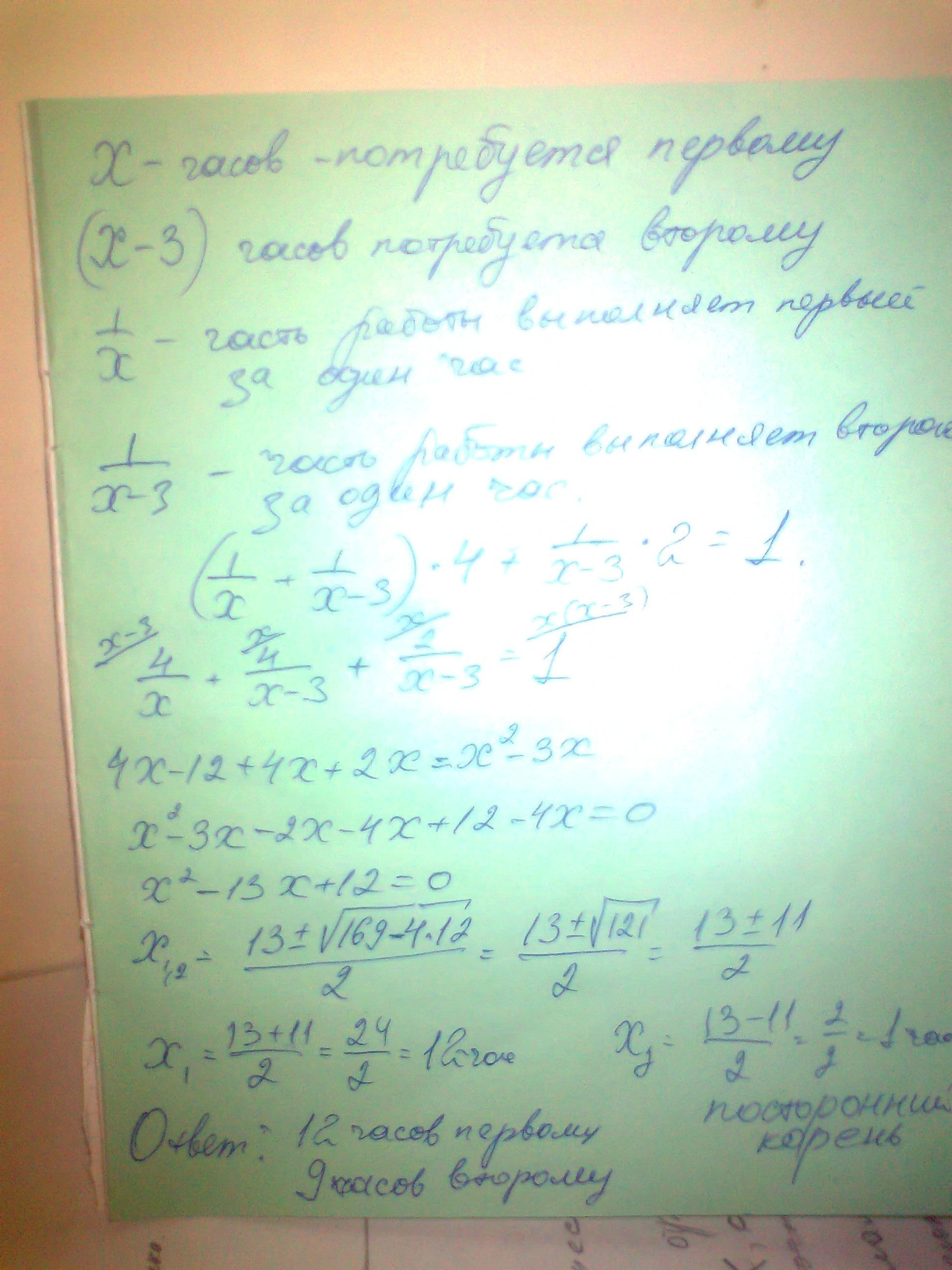 Два тракториста должны были вспахать поле. После 4 часов совместной работы первый из трактористов получил другое задание, и второй, оставшись один, закончил вспашку через 2 часа. За сколько часов мог бы вспахать поле каждый тракторист, работая отдельно, если второму на это потребовалось бы на 3 часа меньше, чем первому?