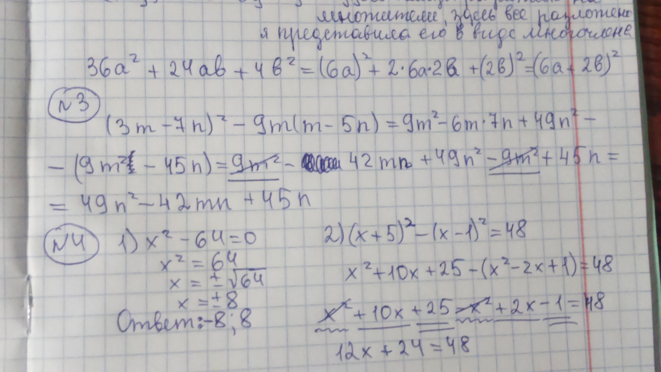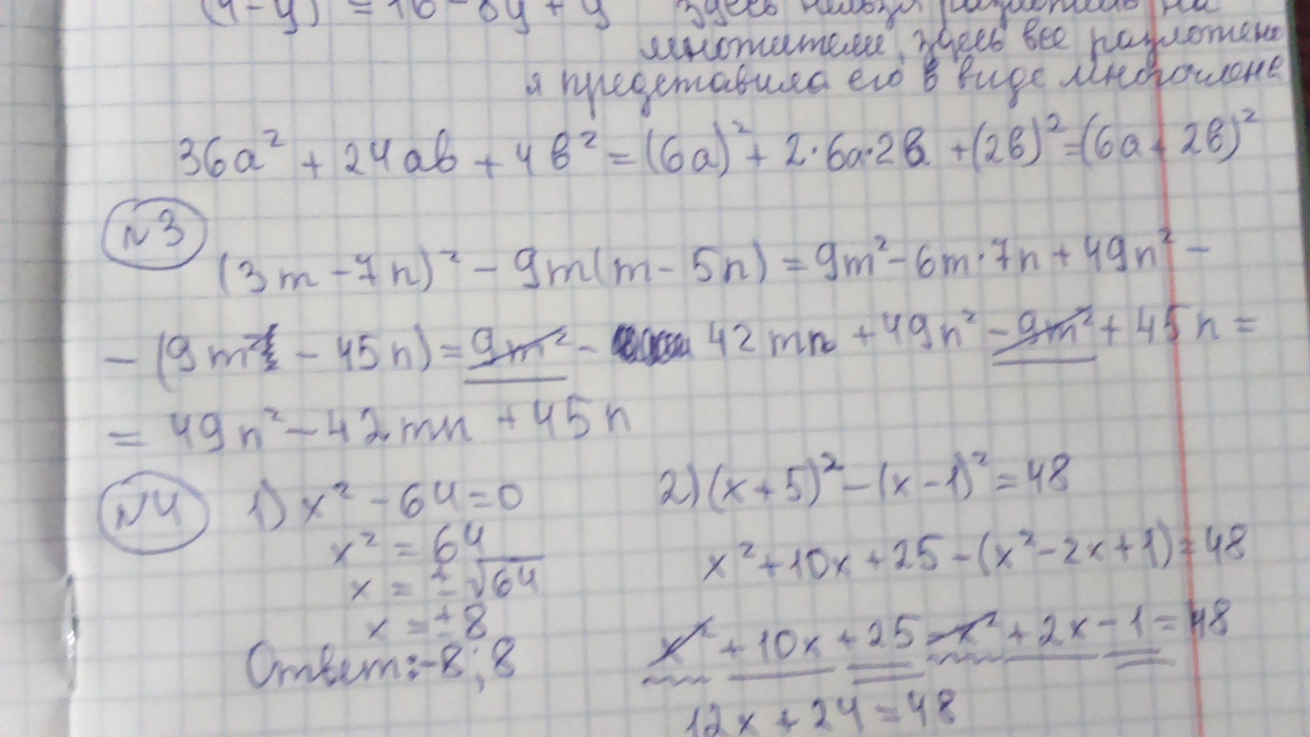 3. 9m^2 - 42mn +49n^2 - 9m^2 - 45mn = -87mn +49n^2 = n(49n - 87m)