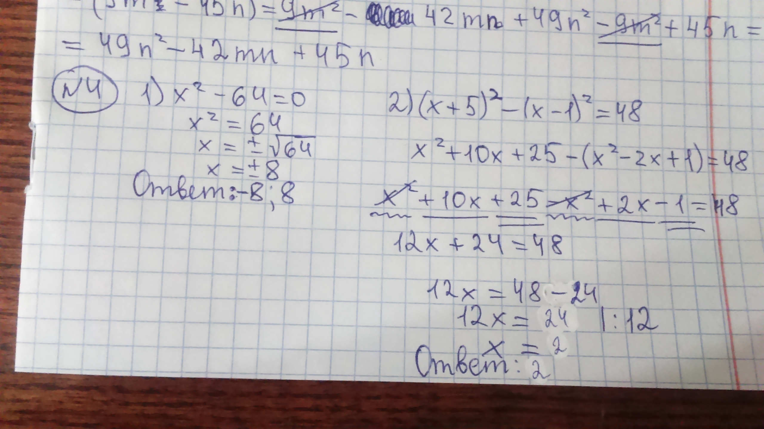 2) х^2 + 10x + 25 - x^2 + 2x - 1 = 48