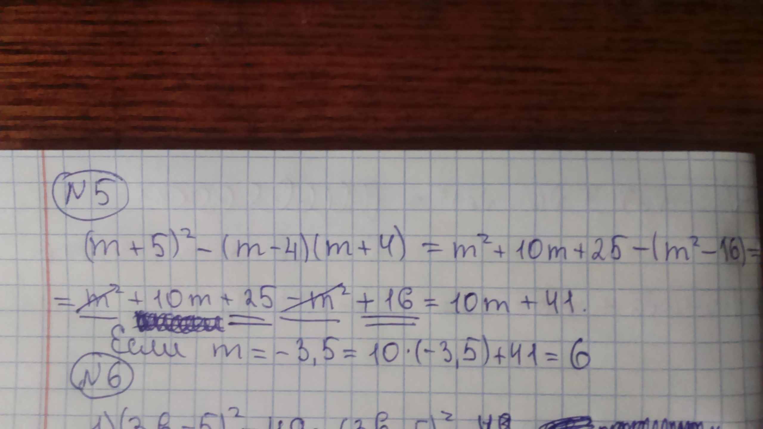 5. m^2 + 10m + 25 - m^2 + 16 = 10m +16