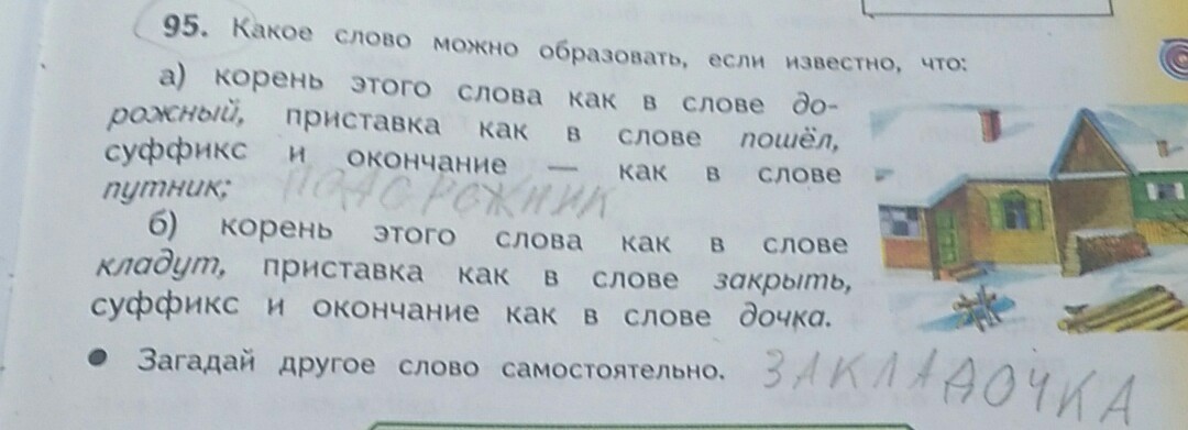 Корень это слово в слове дорожный приставка в слове пошел суффикс и окончание как в слове путник.Дальше задание : загадай другое слово самостоятельно