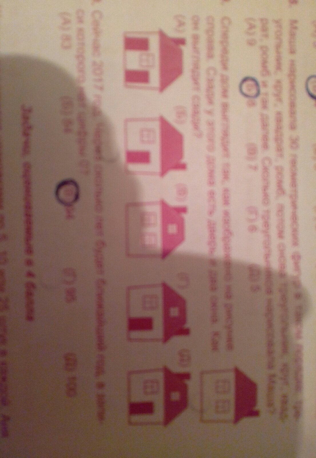 Спереди дом выглядит так, как изабражено на рисунке справа. Сзади у этого дома есть дверт и два окна. Как он выглядит сзади?