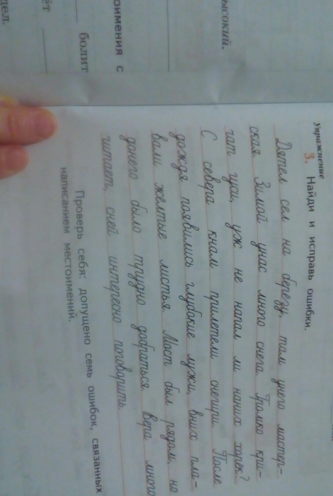 Дятел сел на березу , там У НЕГО мастерская . Зимой У НАС много снега . Громка кричат гуси , уж не напал ли НА НИХ хорек ? С севера К НАМ прилетели снегири . После дождя появились глубокие лужи , В НИХ плавали желтые листья . Мост был рядом , но ДО НЕГО было трудно добраться . Вера много читает , С НЕЙ интересно поговорить .
