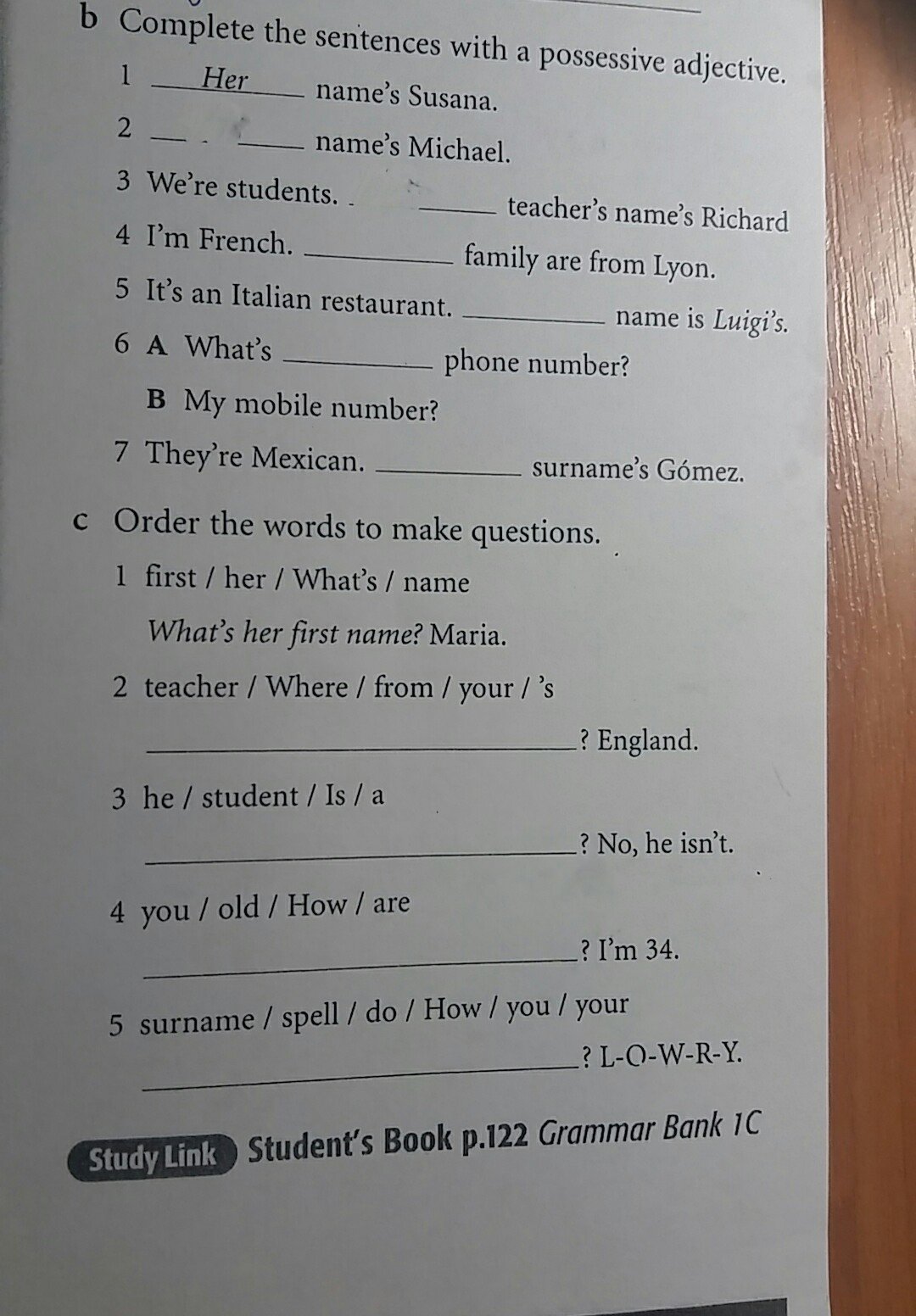 His, our, my, its, your, theirs. Where is the teacher from? Is he a student? How old are you? How do you spell your surname?