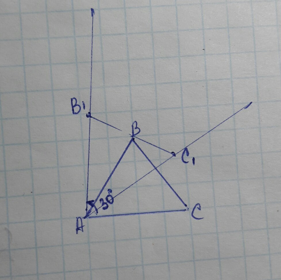 Выполните поворот треугольника ABC на 30 градусов против часовой стрелки относительно точки A