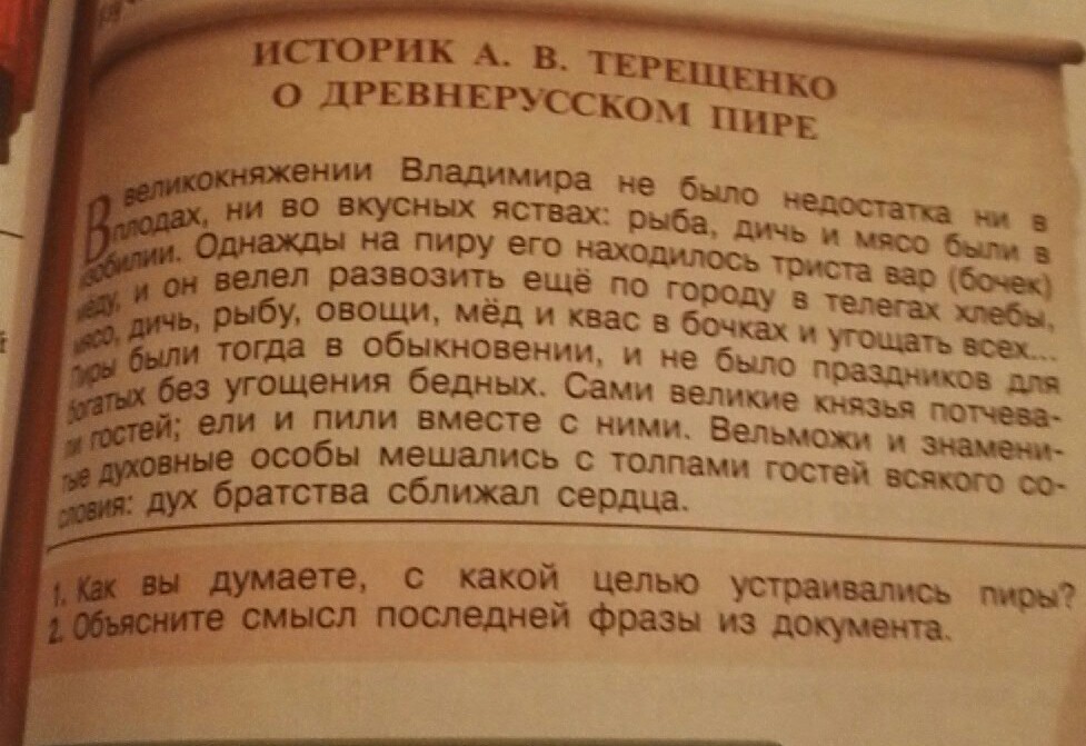 1. Пиры устраивались, когда страна кого-то победила или когда подписан какой-то важный документ