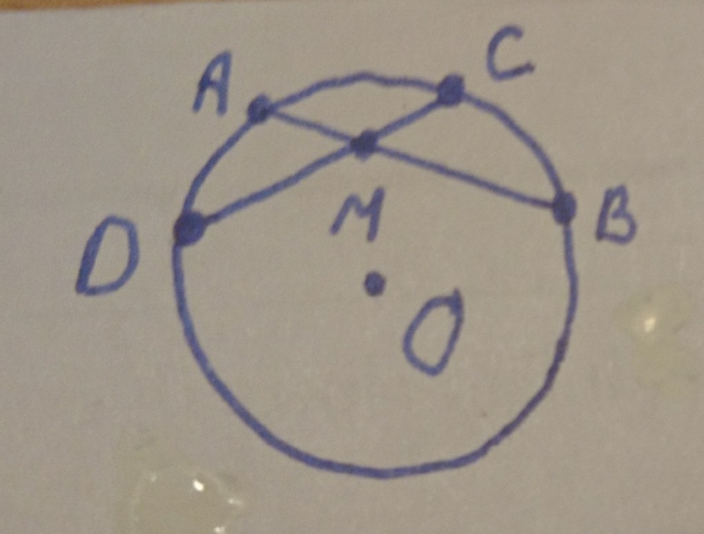Теорема хорд: Если две хорды окружности, AB и CD пересекаются в точке M, то произведение отрезков одной хорды равно произведению отрезков другой хорды: AM * MB = CM * MD