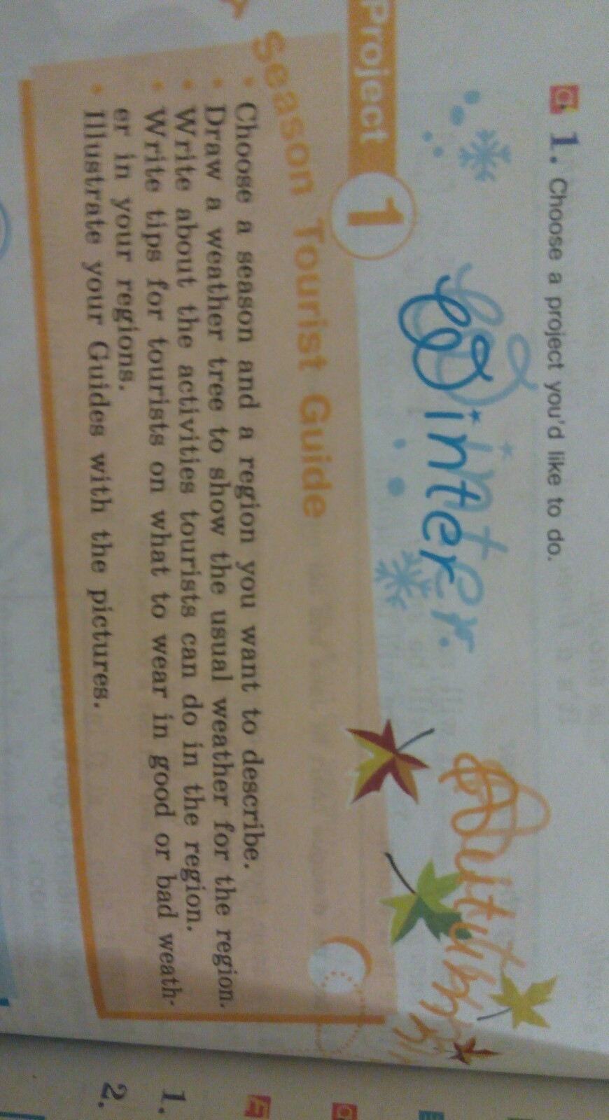 Выберите сезон и регион, в котором вы хотите описать дерево, чтобы показать обычную для региона погоду. О деятельности туристов в регионе. Пишите советы туристам о том, что надеть в хороших или плохих местах в ваших регионах. Иллюстрируйте своих гидов с фотографиями.