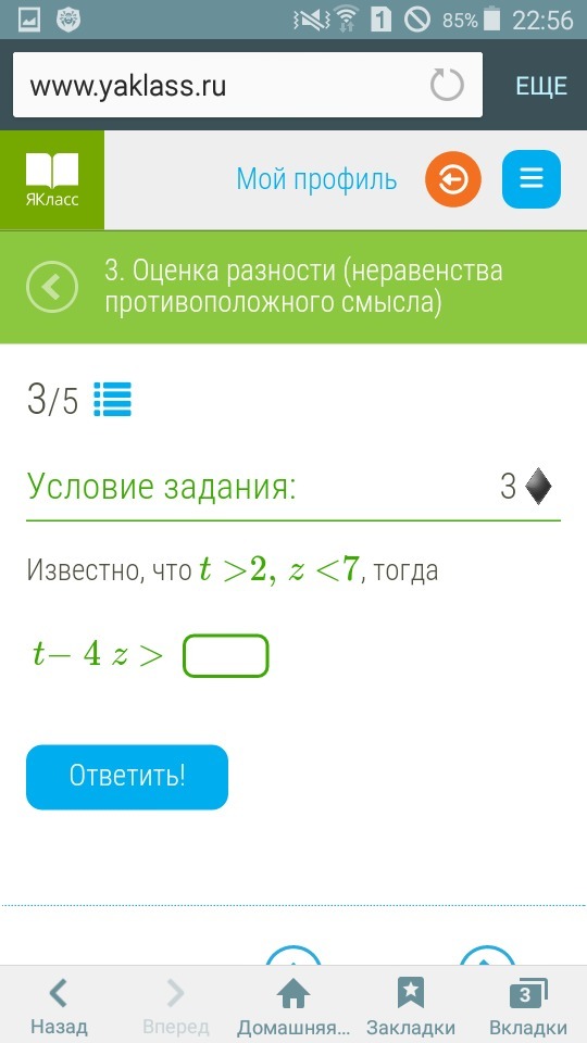 t - 4z > -21, потому что минимальное t = 3, минимальное z = 6.