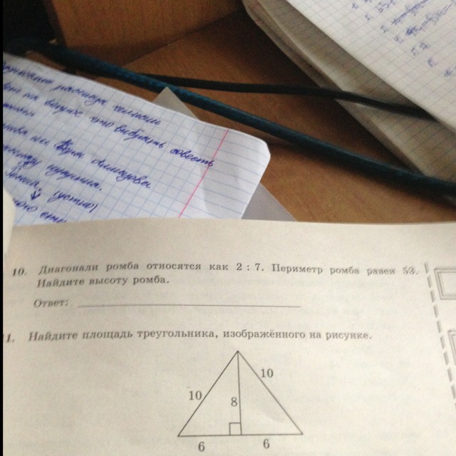10.диагонали ромба относятся как 2:7.Периметр ромба равен 53.Найдите высоту ромба.с решением плиз