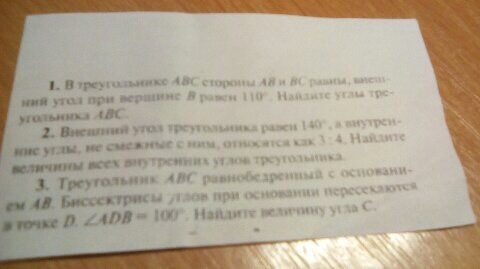 1) Тк угол В равен 110, а треугольник ABC-равнобедренный, то уголС=углуА=(180-110):2=35.