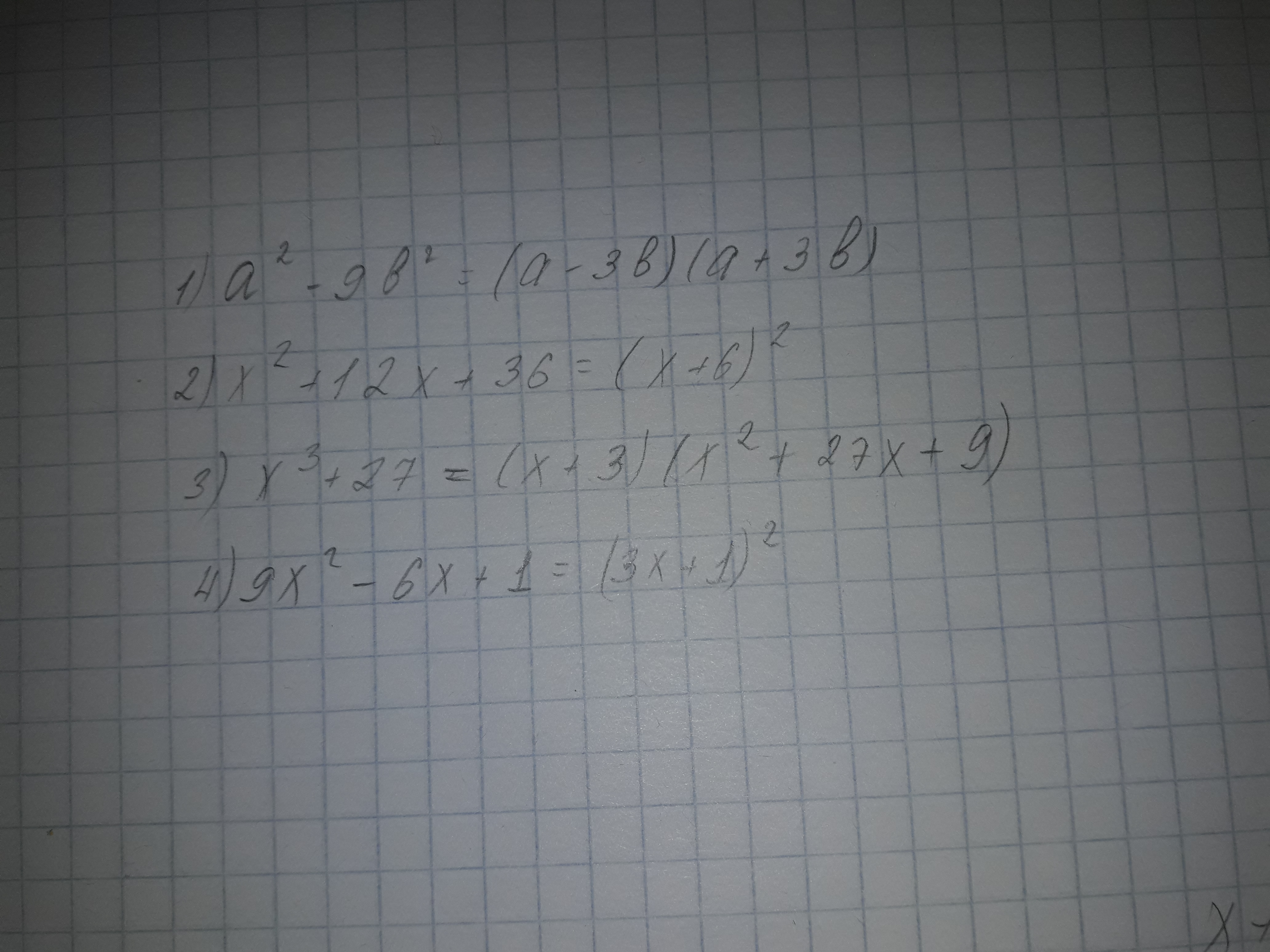 3. х³+27 = х³+3³ = (х+3)(х²-х*3+3²) = (х+3)(х²-3х+9)