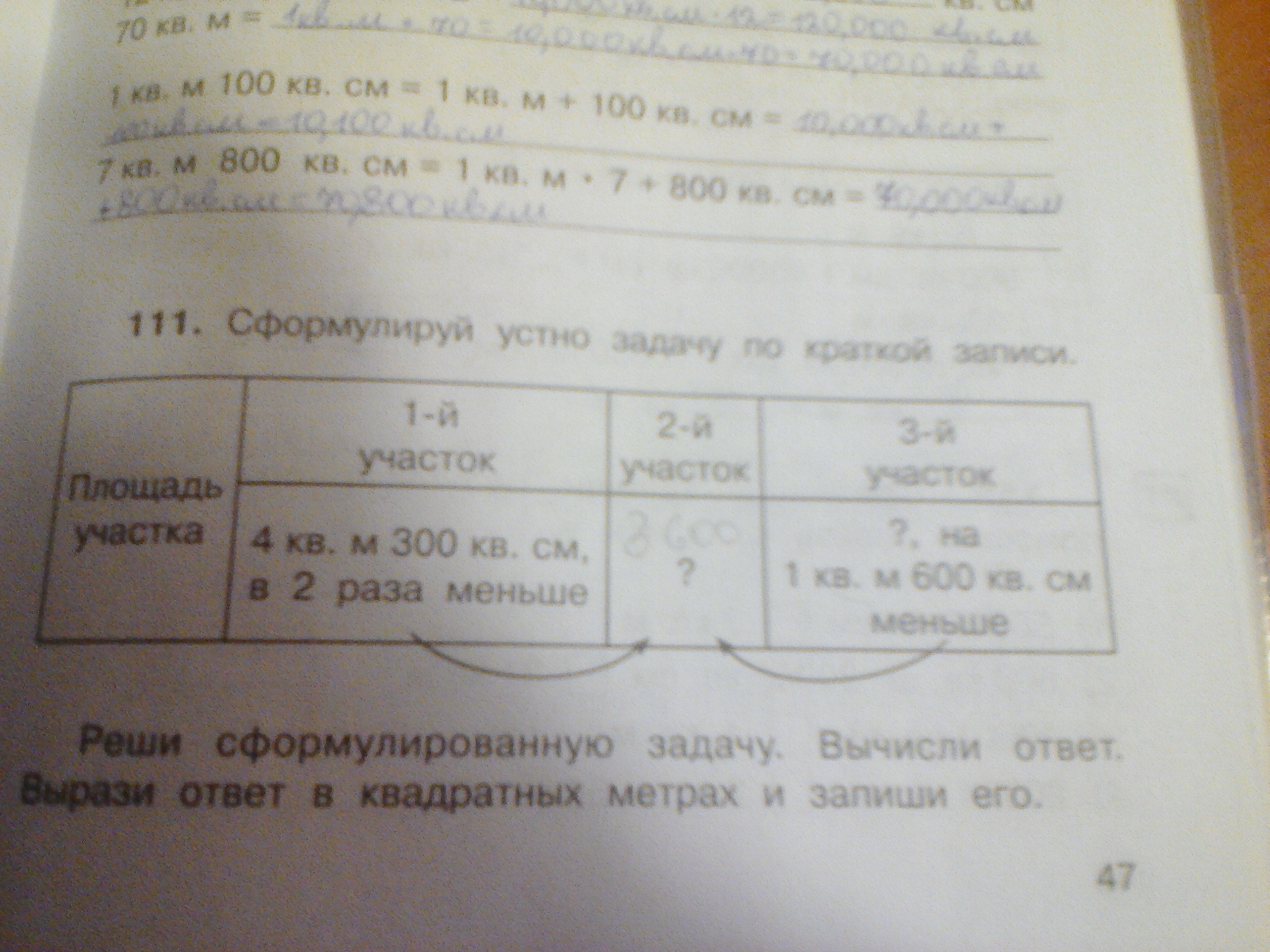 2м150см-1м600см=20150-10600=9550см^2 площадь третьего участка