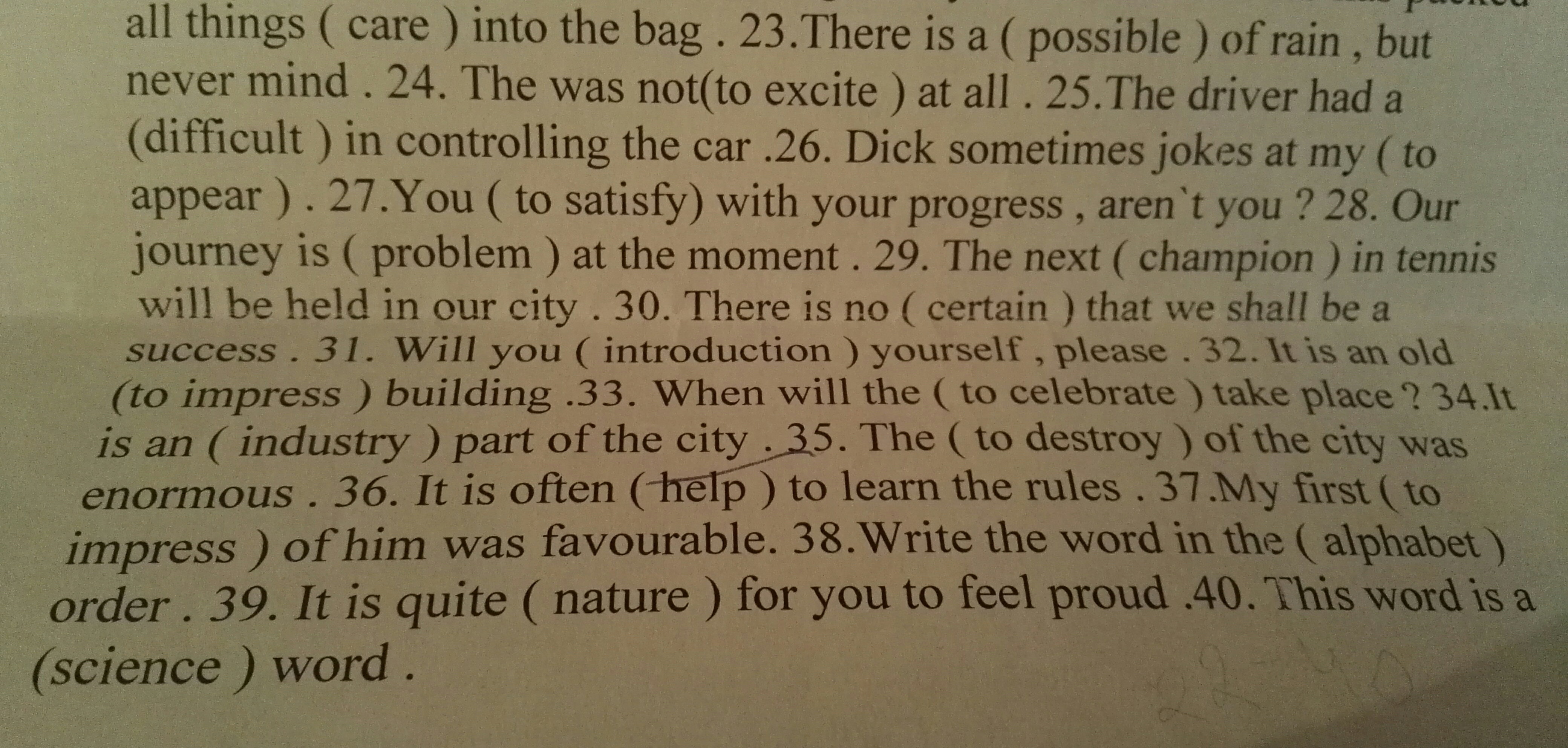 Пожалуйста помогите!!!! по английскому языку 10 класс, нужно в скобках вставить правильное образование