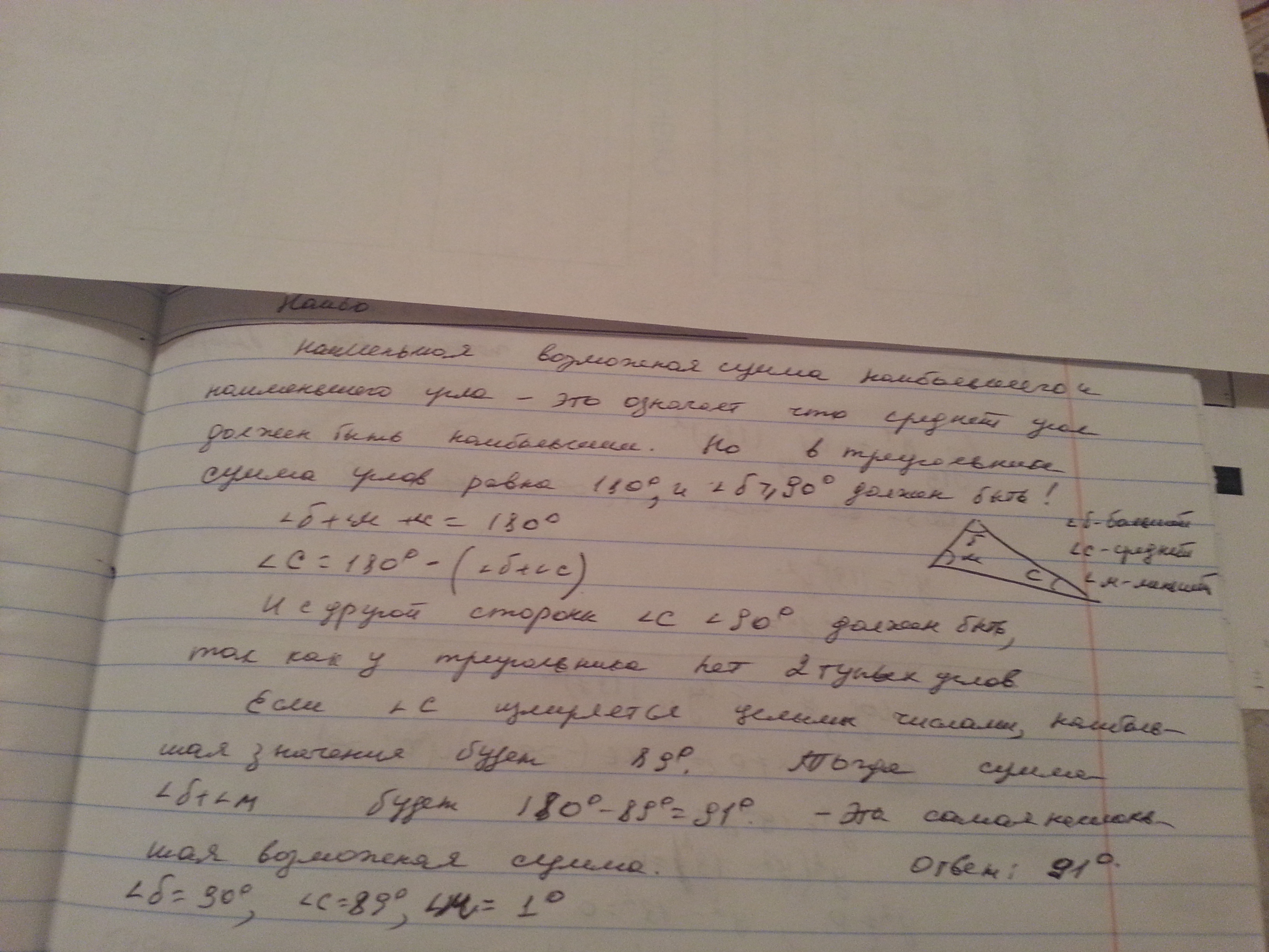 Самая маленькая сумма двух углов будет, если вычесть из 180°