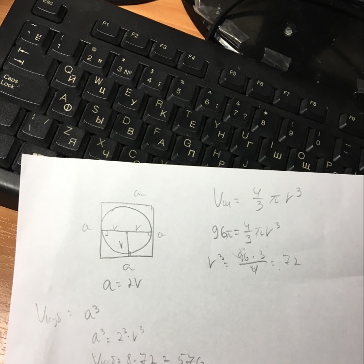 обьем шара равен 96пи, найдите объём куба, описанного вокруг шара