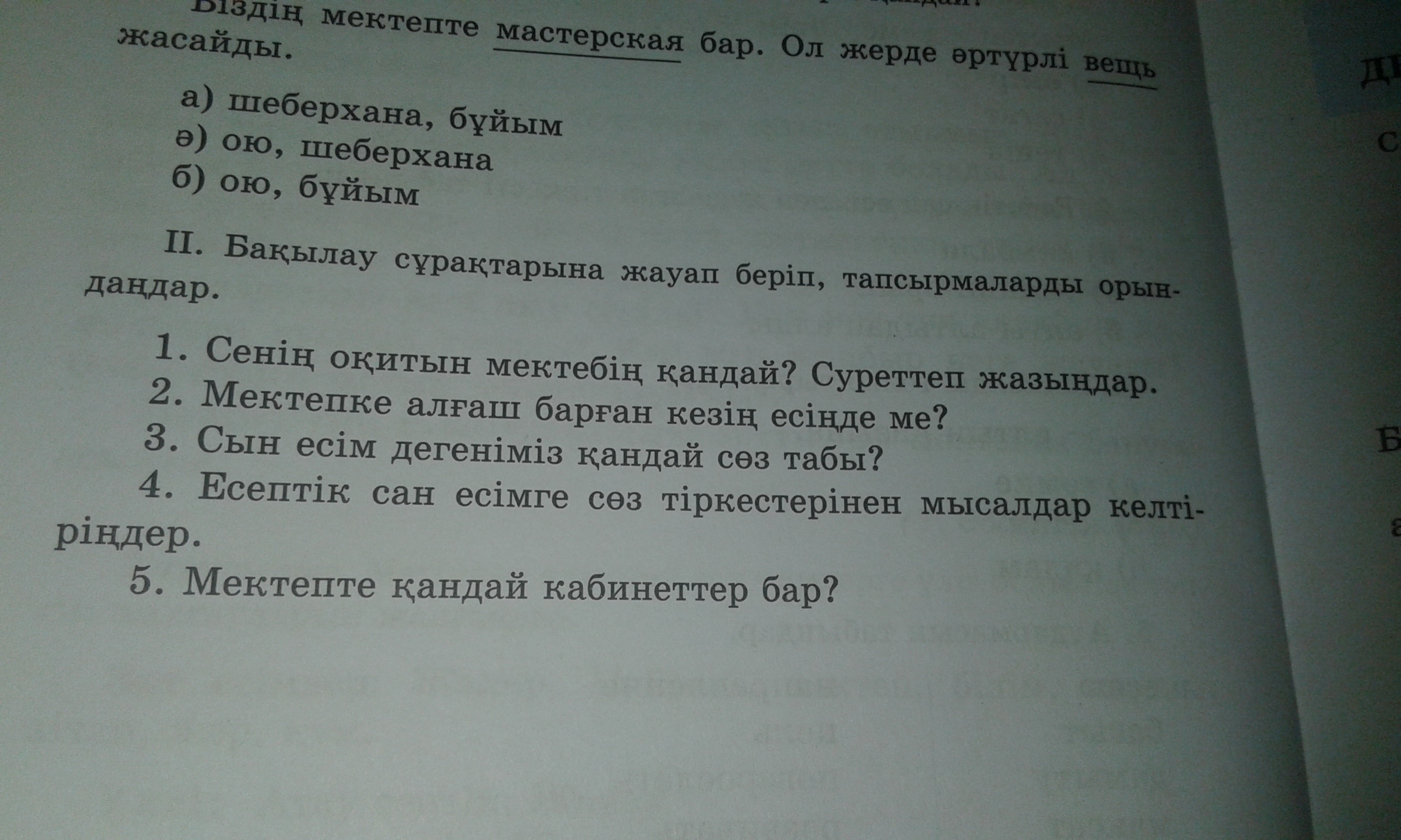1 (пишешь в какой школе ты учишься) мен . . . . . мектебінде оқимын