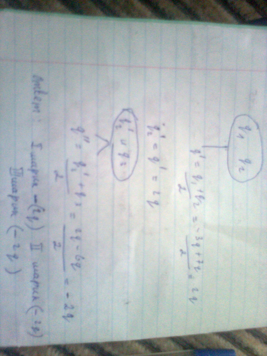 Смотри вложения)))))))))))))))))Там короче в первой системе первый и второй шарик соединяют и получается 2q т е первый шарик равен 2q и второй тоже 2q
