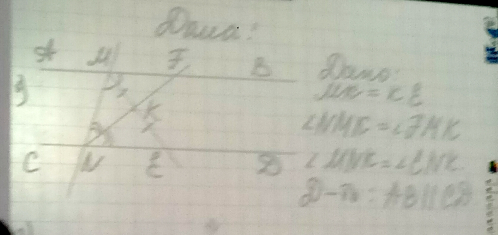 ∠NEM=∠EMF, значит они накрест лежащие при параллельных NE и MF и секущей МЕ.