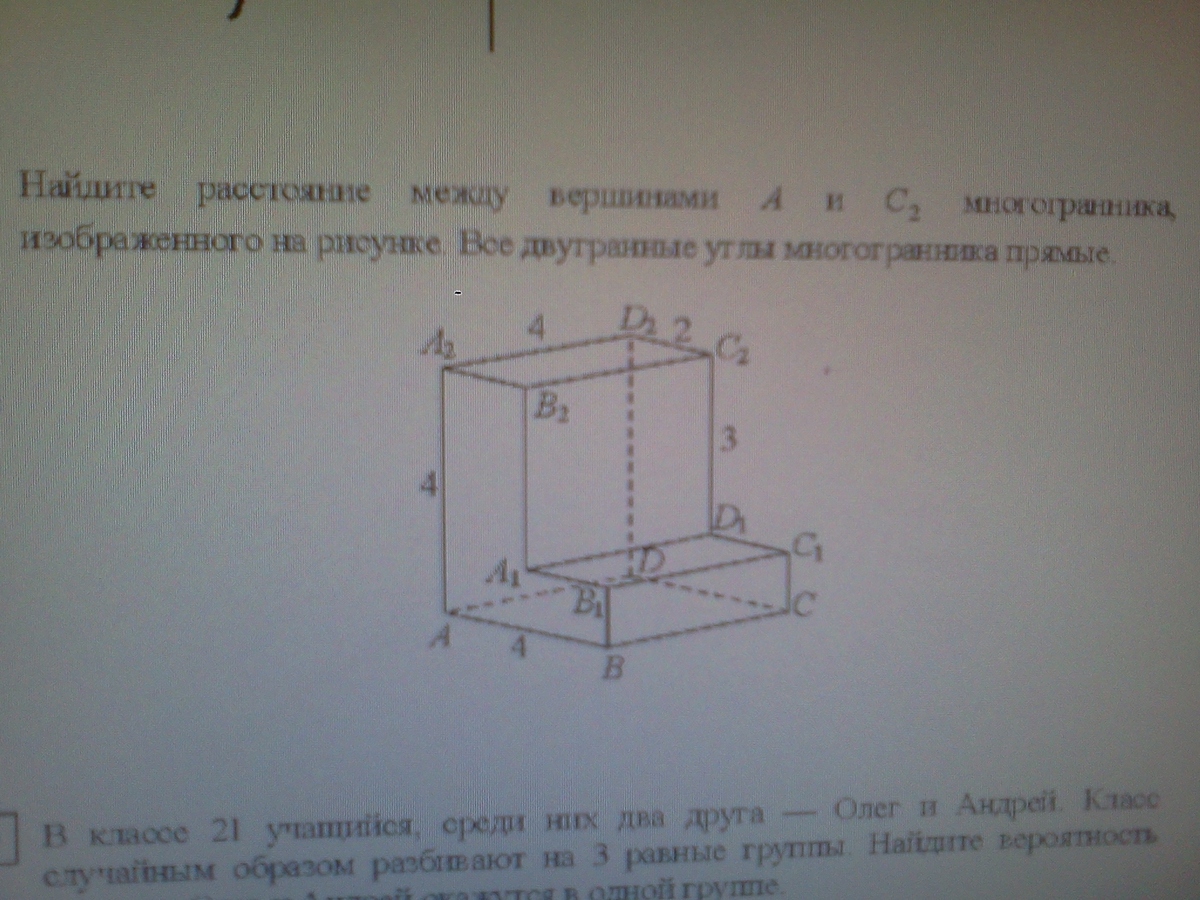 найдите расстояние между вершинами а и с2 многогранника изображенного на рисунке.все двугранные углы многогранника прямые