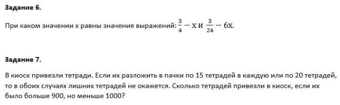 1задача) 3/4-х=3/24-6х -х+6х=3/24-3/4 5х=3/24-18/24 х=-5/8:5 х=-1/8 ответ: при х=-1/8 2 задача) 1)нок(15,20)=60. Значит, количество тетрадей должно быть кратно 60-ти. 2)1000:60=16 (ост.40) 3) 60*16=960 (т) ответ: 960 тетрадей привезли в киоск