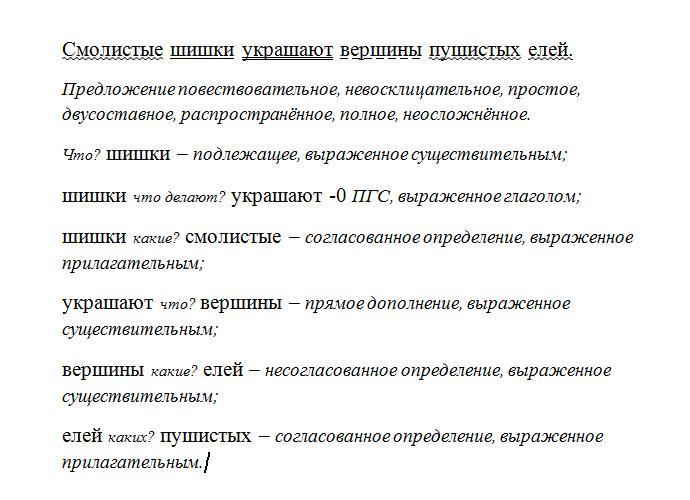 Разбери предложение Смолистые шишки украшают вершины пушистых елей (Также выпиши словосочетания).