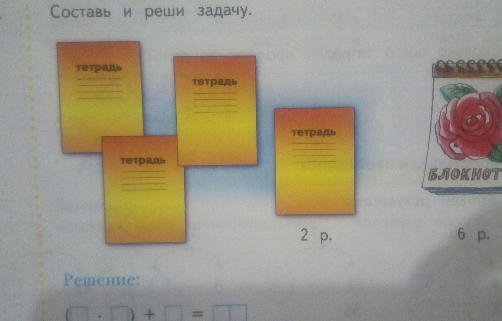 Есть 4 тетради каждая стоит 2 рубля и блокнот который стоит 6 рублей. Сколько надо потратить что бы купить все тетради и блокнот ?