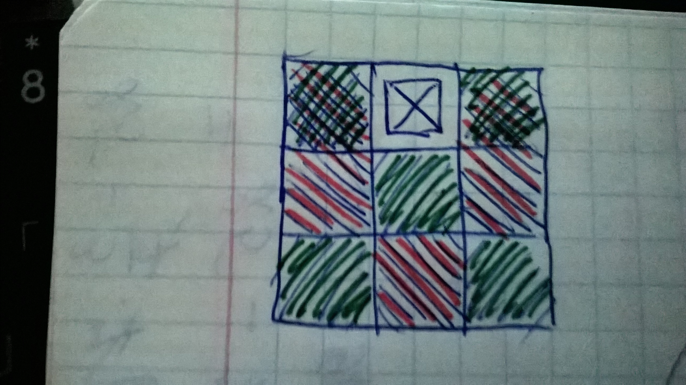 Продолжи левую и правую стороны закрашенного квадрата на длину стороны квадрата, дострой до квадрата.