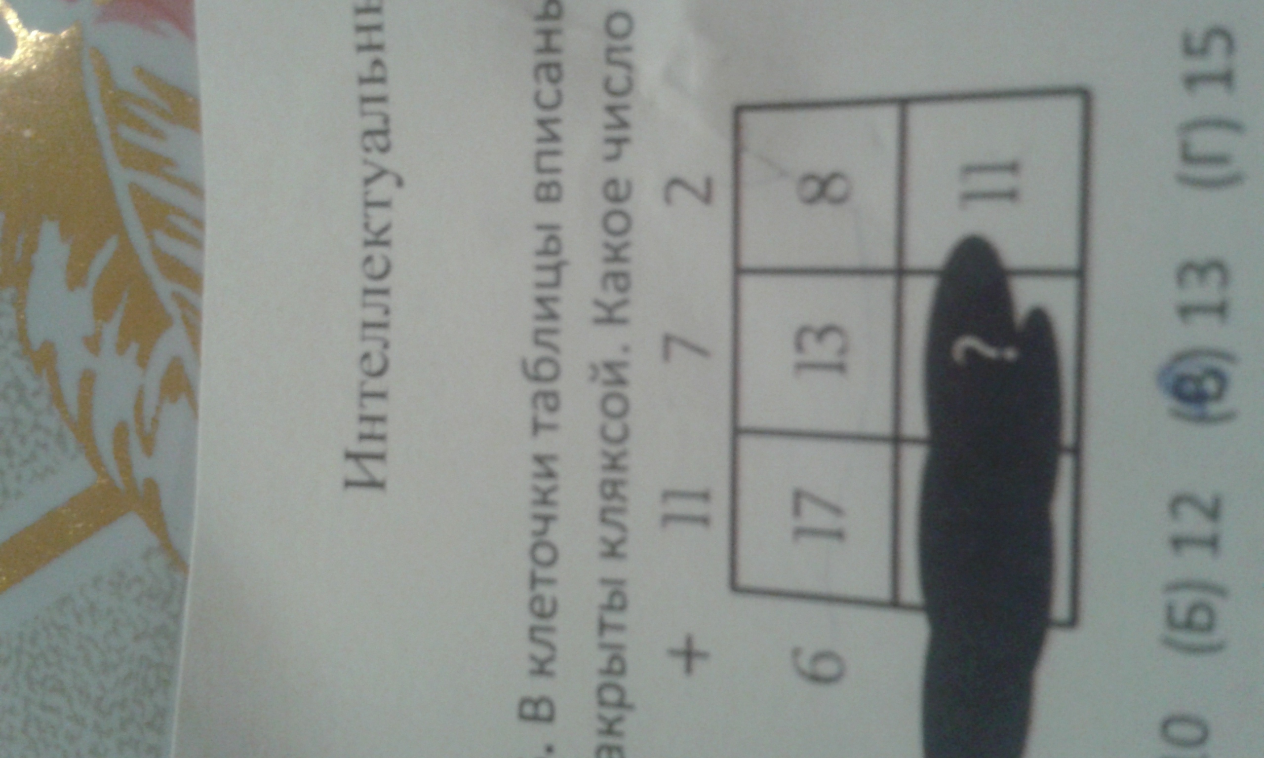 в клетки таблицы вписаны суммы чисел, стоящих вдоль её краев. Некоторые числа закрыты кляксой. Какое число стоит на месте знака вопроса?