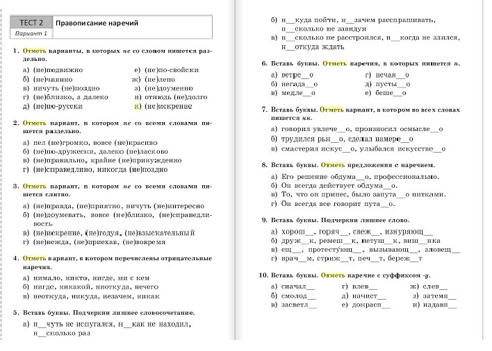 10. а) сначала, б) СМОЛОДУ, в) засветло г) влево д) начисто