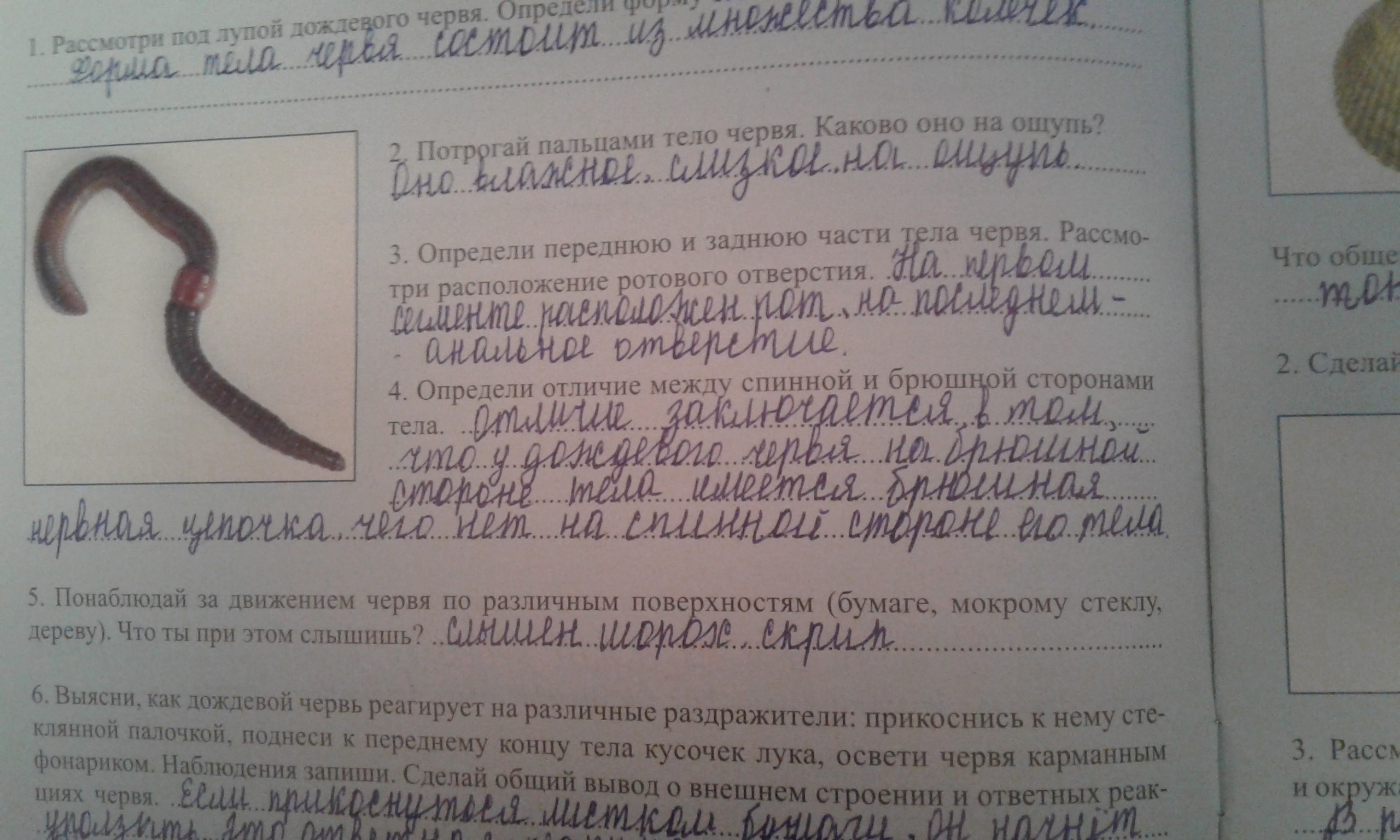 помогите с заданием "определите переднюю и заднюю части тела дождевого червя. Чем они отличаются? Рассмотрите расположение ротового отверстия"