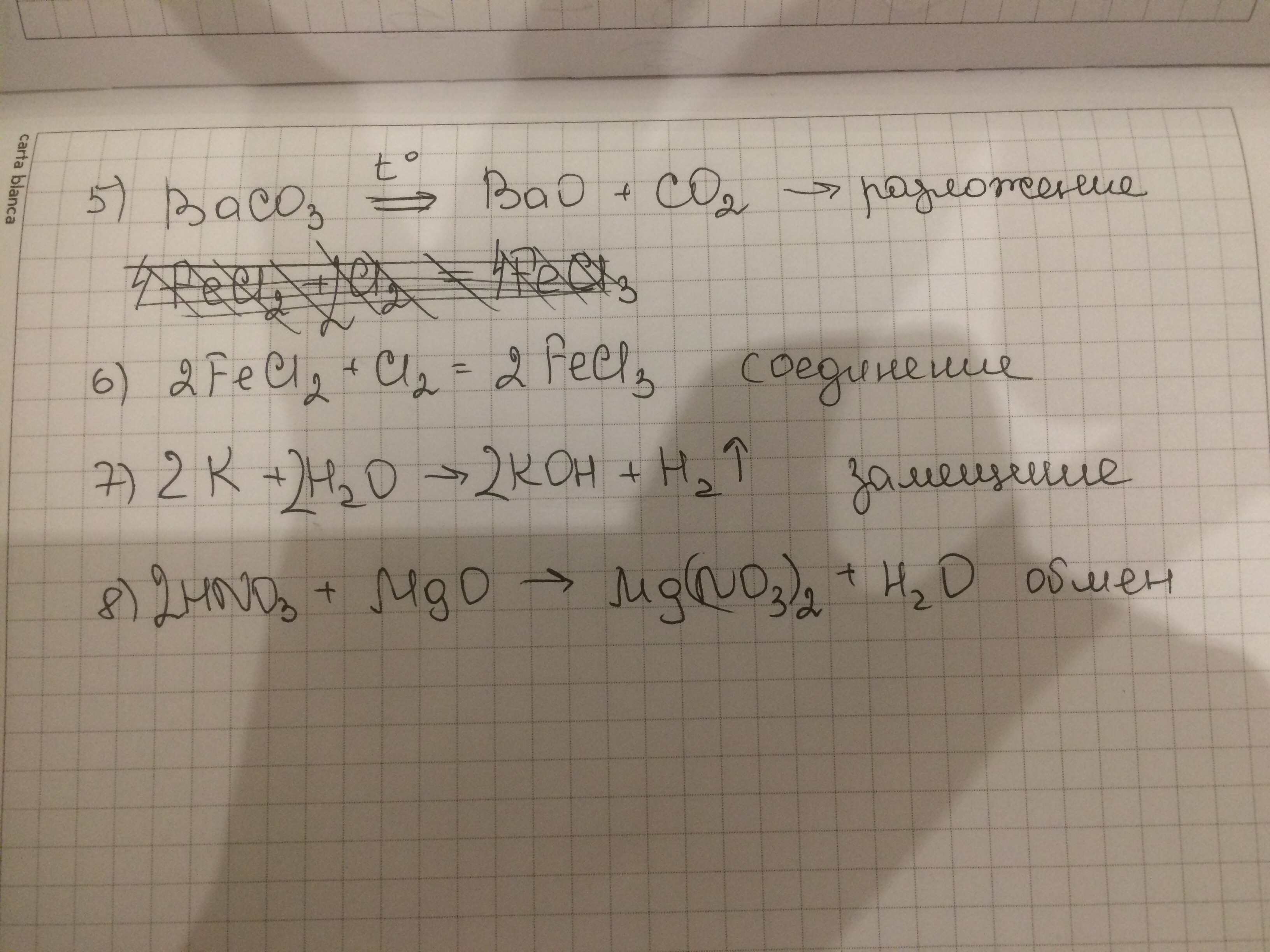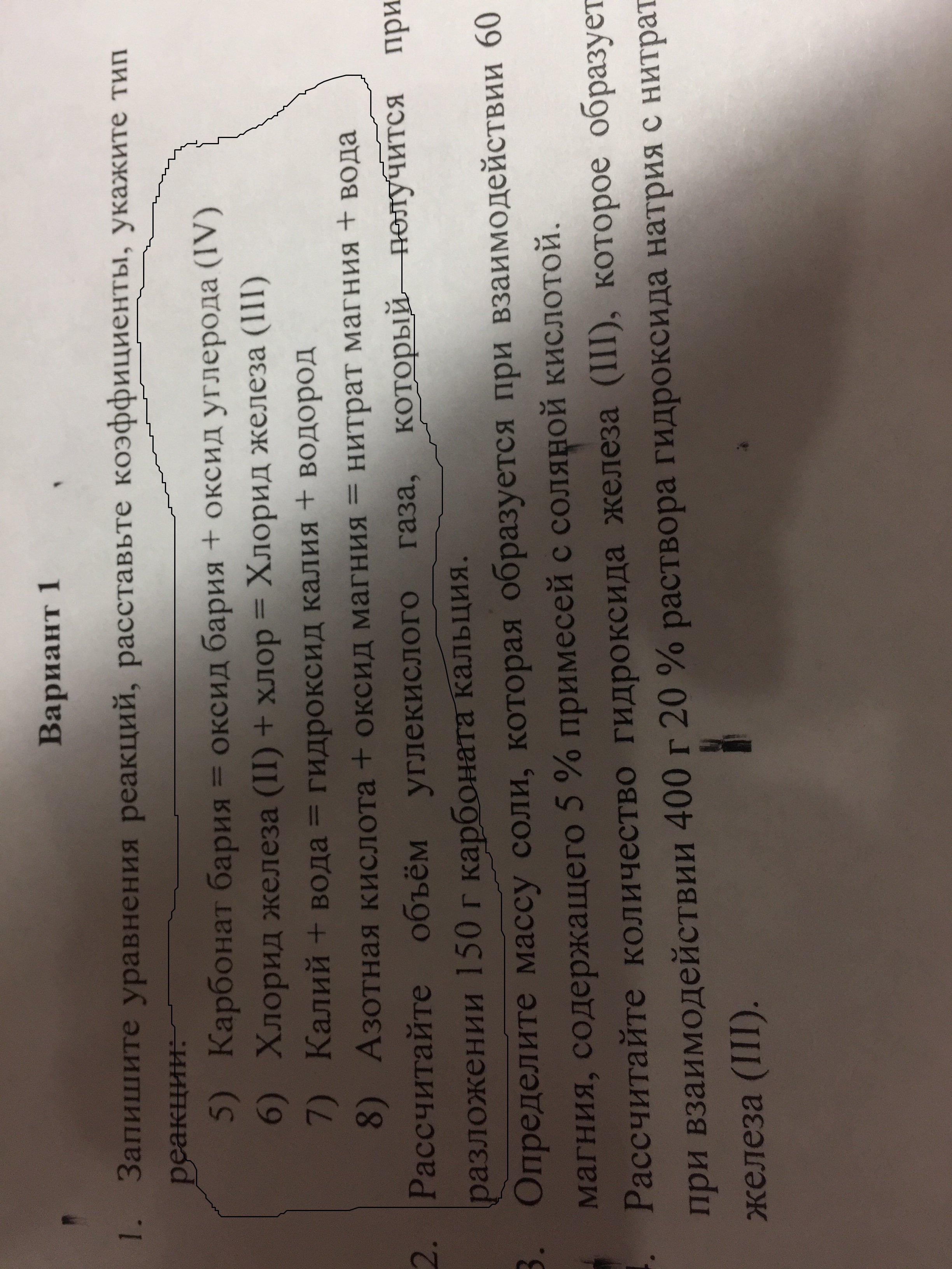 запишите уравнения реакций, расставьте коэффициенты, укажите тип реакции первый номер